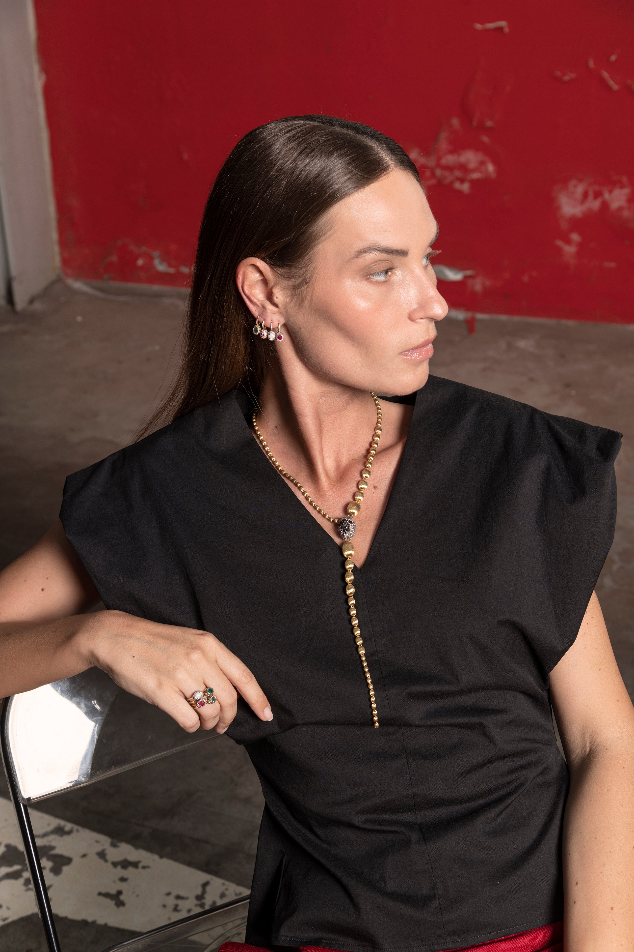 Reverse: The iconic collection where necklaces, bangles, rings and pendant earrings transform in a simple gesture revealing their dual soul, as if by magic. From bolder to more essential shapes, the collection offers a range of transformable accessories where shades of ruby, sapphire, opal and amethyst celebrate the elegance of color and versatility.