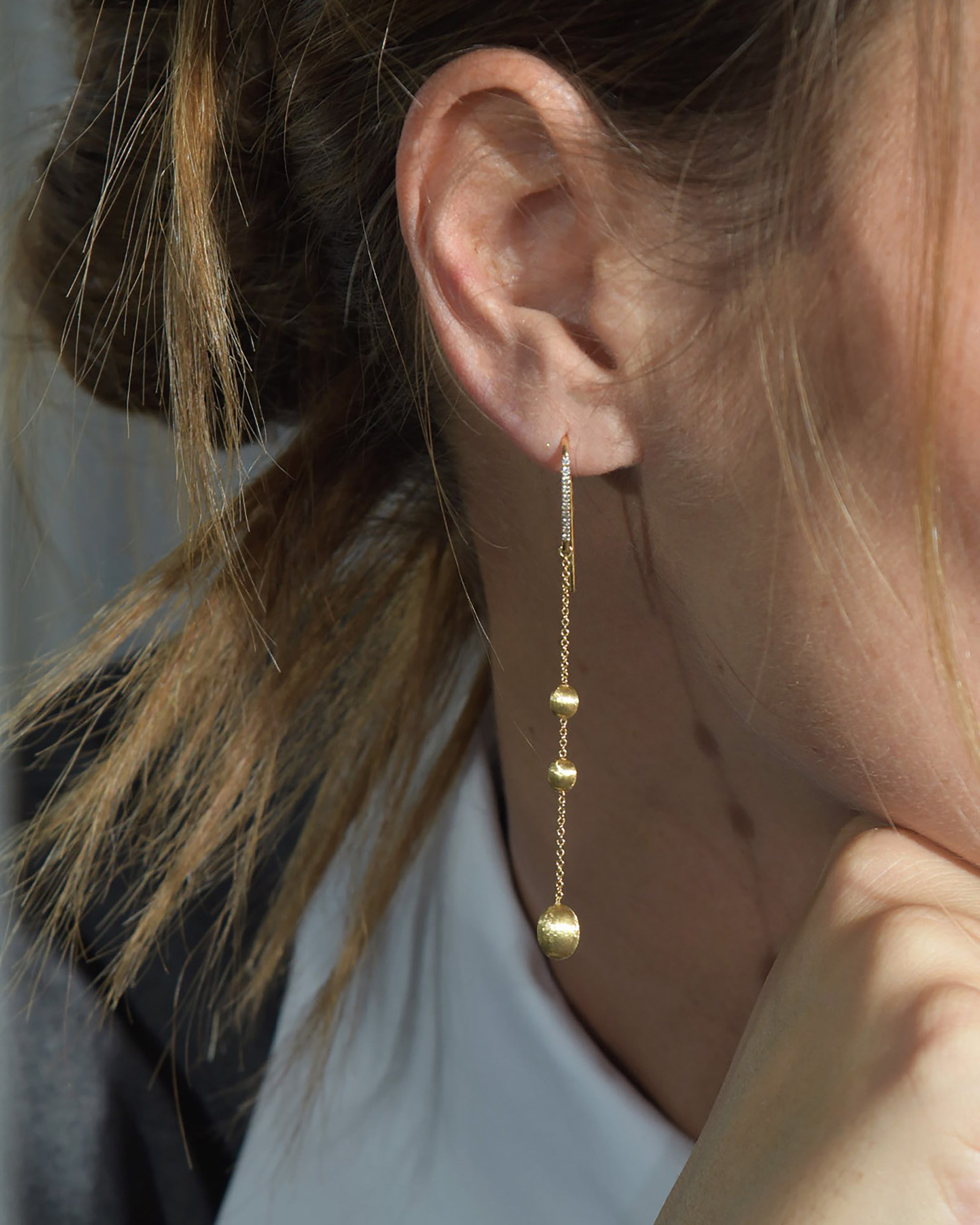 Choose from 18kt gold diamond huggies, hoops, earcuff, stud and drop earrings in the Nanis collection.