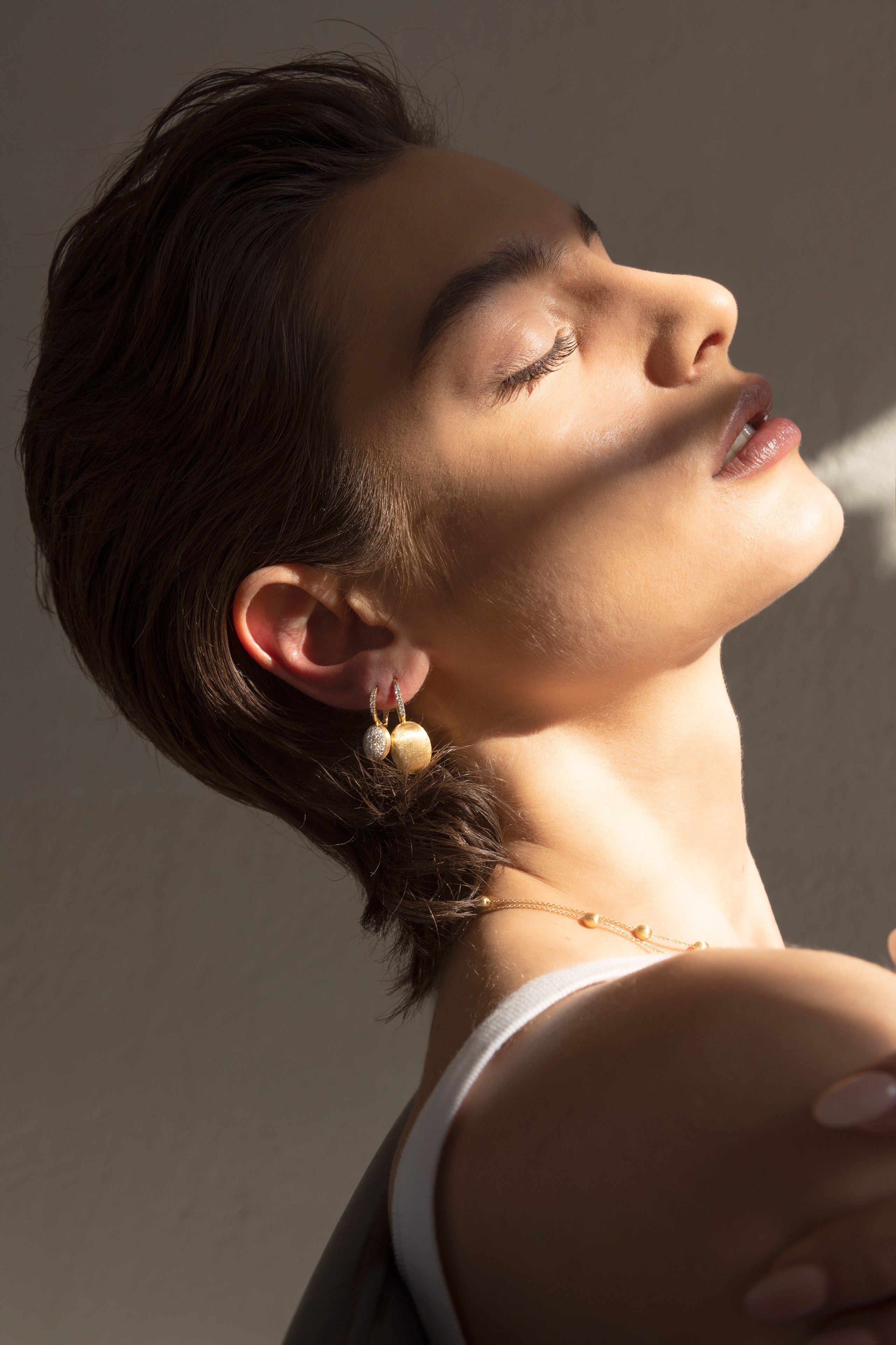 Nature and women have always been among Laura's greatest inspirations. The organicity, sinuosity and balanced 'roundness' of Nature are in fact, for her, perfectly reflected in women, who are the most sensual and fascinating human beings. It is to this sinuosity that she has dedicated the most iconic of all Nanis' shapes: our boules, 18kt gold 'beads' hand-engraved using the ancient technique of the millerighe burin.