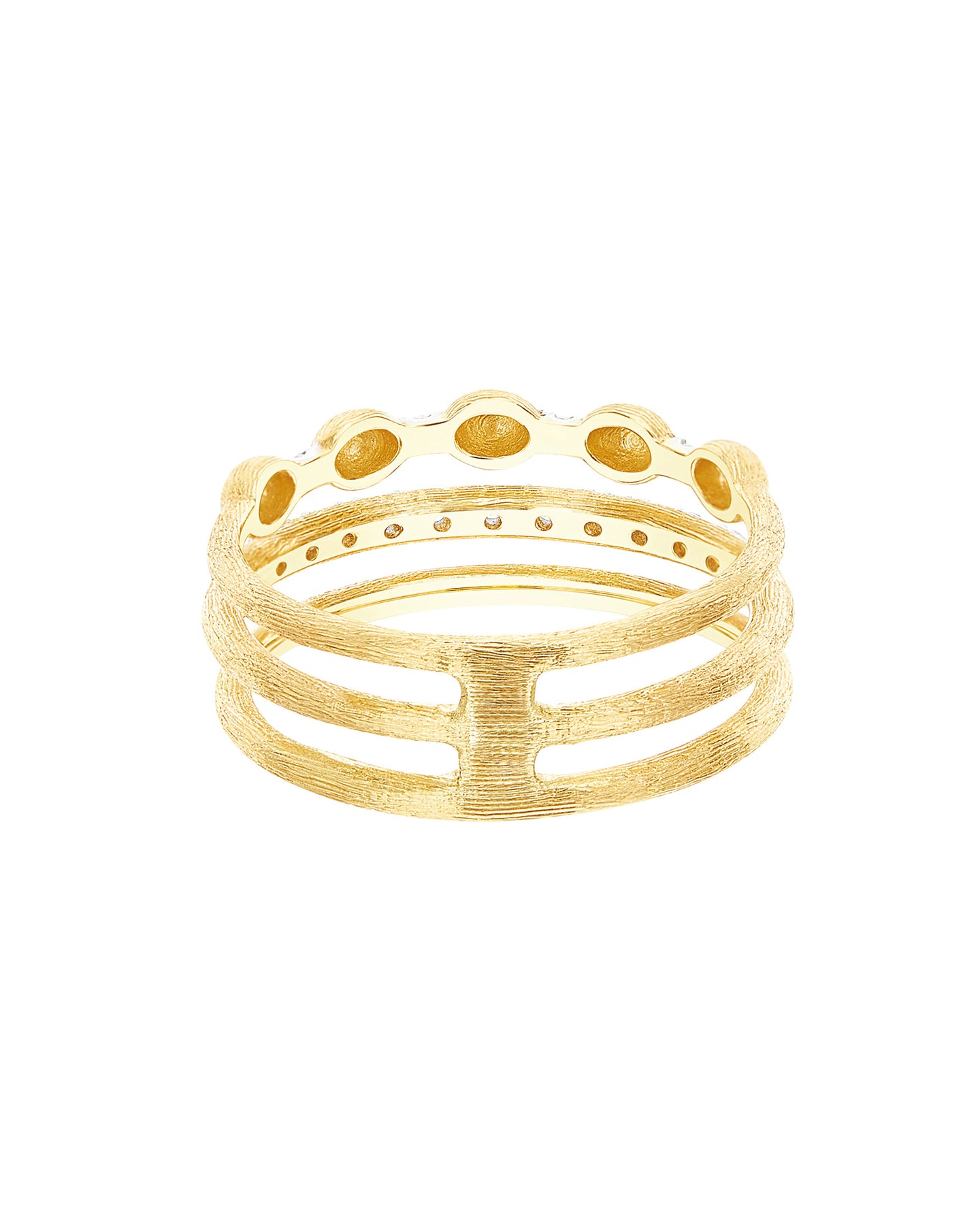 Elegant 18 kt gold and diamond ring. The golden and uneven surface, entirely hand-engraved by our artisans with a special burin tool, creates together with diamonds a prodigious game of lights to be combined with a look both elegant and casual.