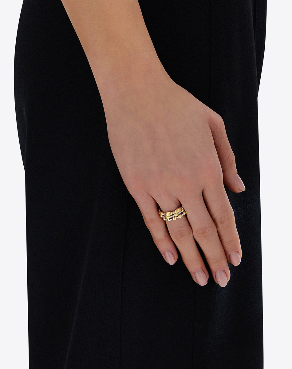 An essential and elegant jewel, entirely handmade in 18kt gold and made even brighter by the diamonds. A masterpiece to wear on your finger!