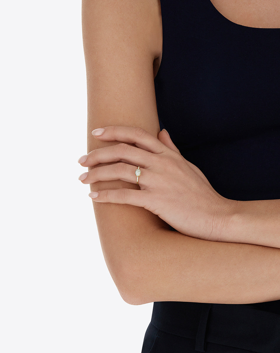 Poetry meets art in this handmade ring in 18kt gold and diamonds, with an elegant and timeless taste.