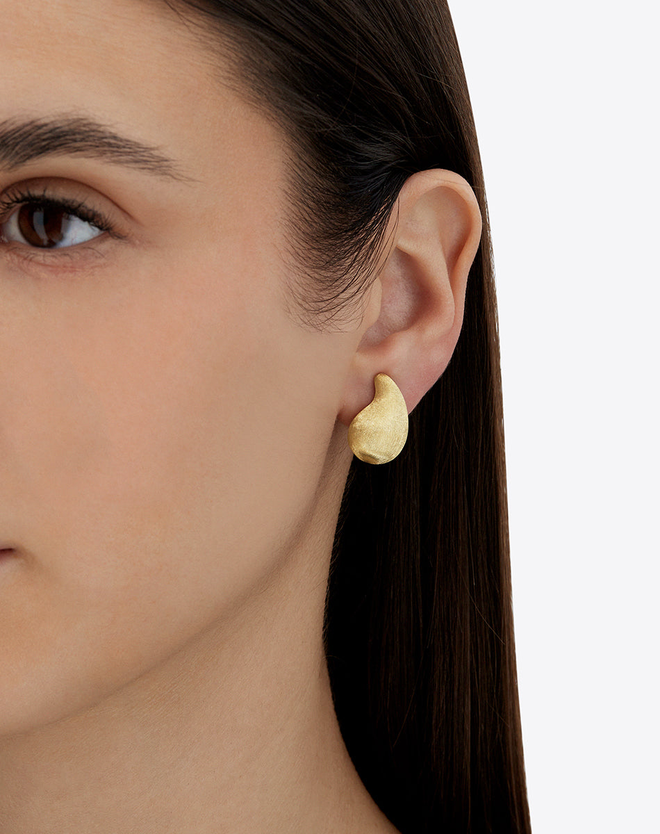 Paisley, a motif with very ancient origins and much loved by Laura, becomes bold and sensual at the same time in these 18kt hand-engraved gold earrings, revisited in a more casual version. A masterpiece of aesthetics and craftsmanship of immeasurable beauty.