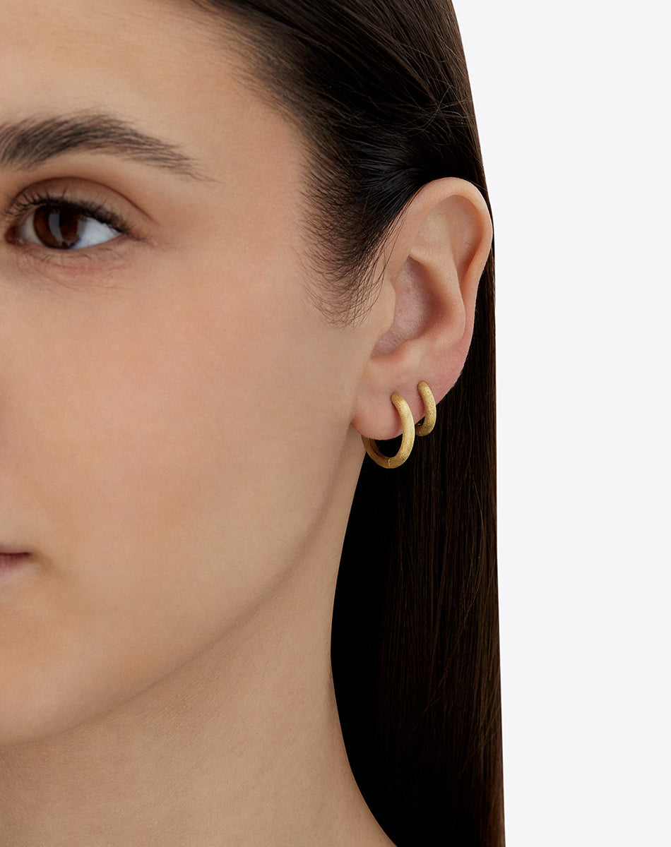 As essential as unique, these 18kt gold hoop earrings, hand-engraved by our artisans, are perfect for any look! Laura's advice? Play with this jewel, and if you have several holes combine them with other earring models!