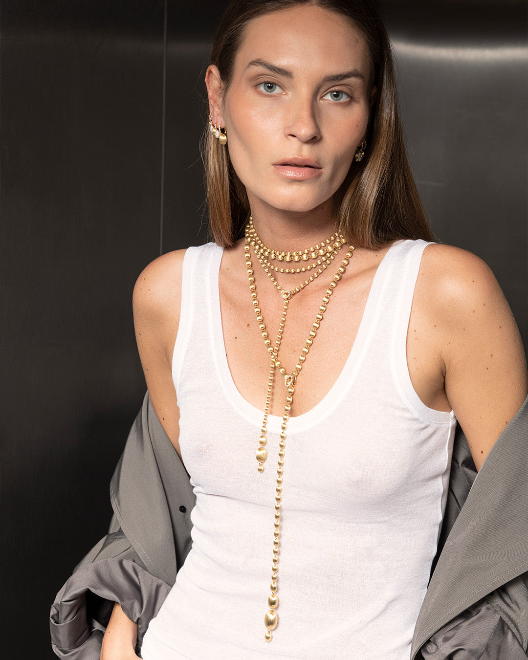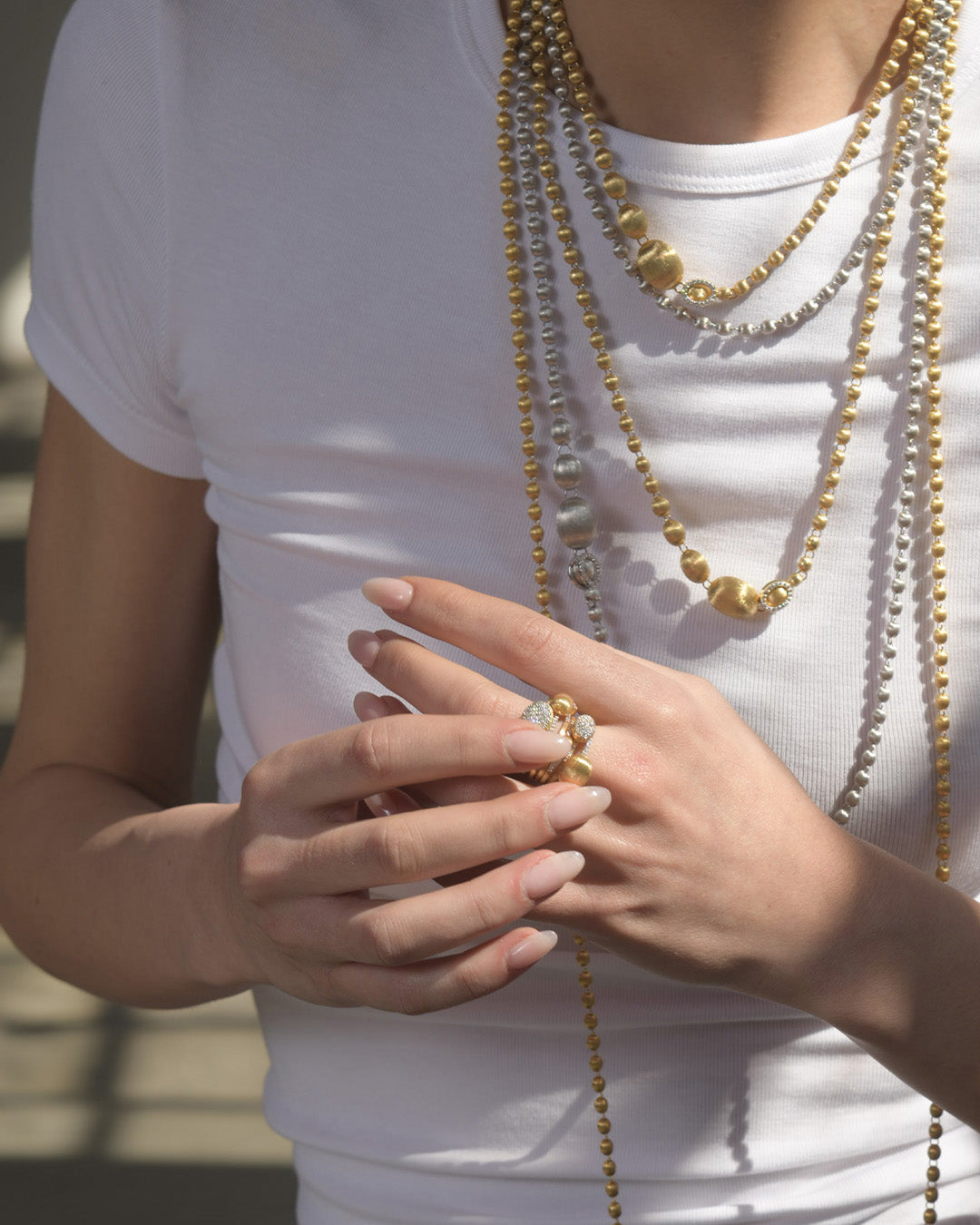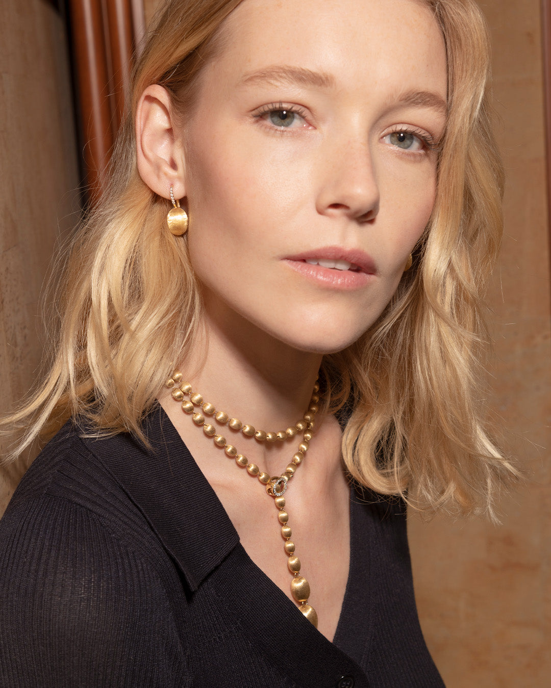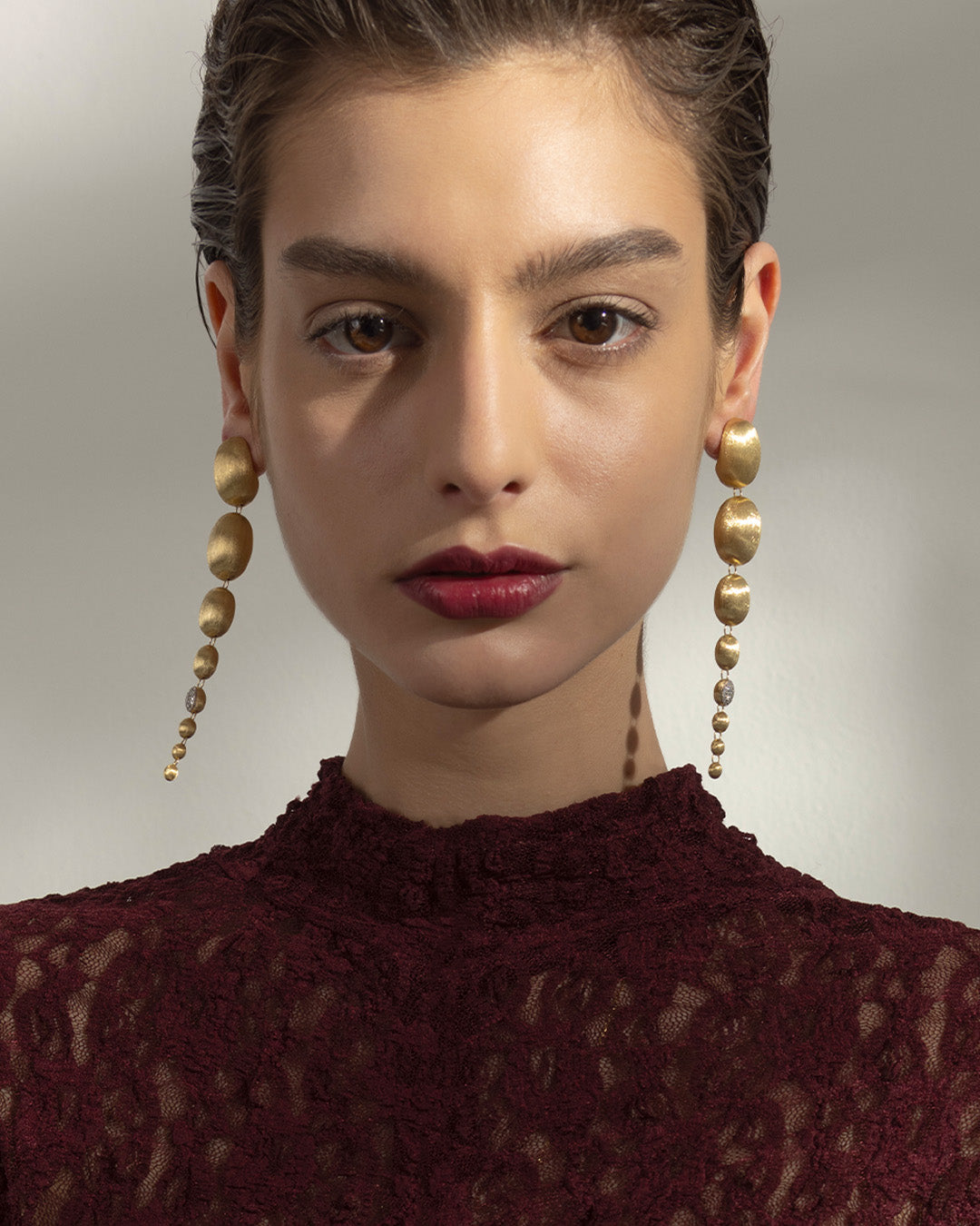 after all, for Laura wearability is fundamental with jewels, and you can see it not only in the lightness but also in some little, "tailored" details: the first boule slightly hollowed to perfectly welcome the lobe, and the special butterflies equipped with a little plate to support the upper part of the earring, ensuring a perfect fitting.