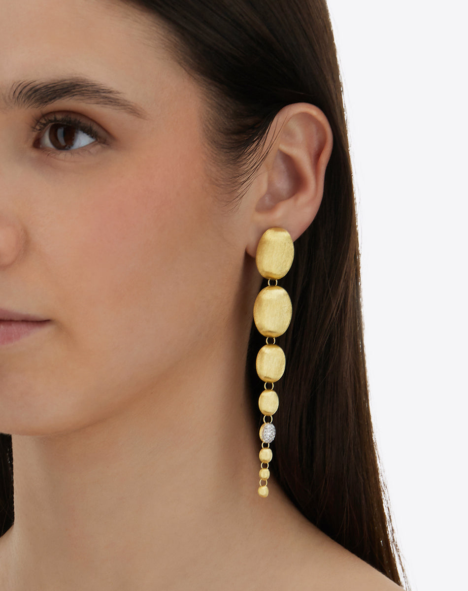 Light, rounded, impalpable: just like clouds! These hand-engraved 18 kt gold and diamonds earrings, a masterpiece of craftsmanship and design, will surprise you not only for their beauty but also for their extreme lightness: once worn, you will forget to have them on...