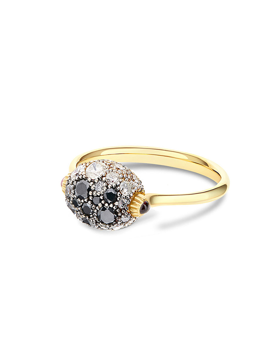 A masterpiece of craftsmanship and passion, this ring from the reverse collection sublimates elegance and versatility, alternating a splendid ruby with a pavé of ice, black and grey diamonds. The aesthetic refinement is combined with the genius of a mechanism that allows you to rotate the ring and thus express it in two completely different ways, depending on your taste and your personality. A truly unique jewel!